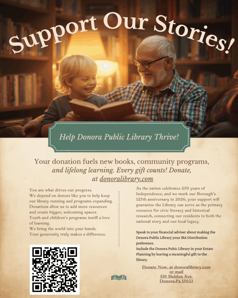 We can’t do what we do without your help. Please make your tax-deductible donation to the Donora Public Library.